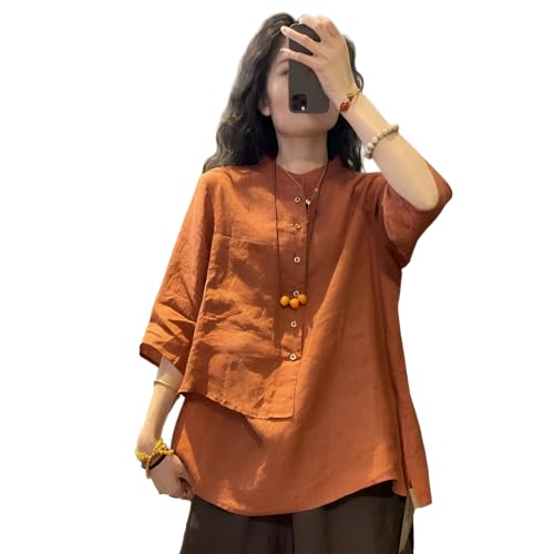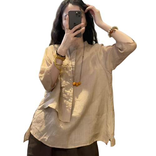 [Vailaipupy] 秋の着回しシャツ アシンメ 綿麻 七分袖 レディース ゆったり お腹カバー デザイン 大人可愛…